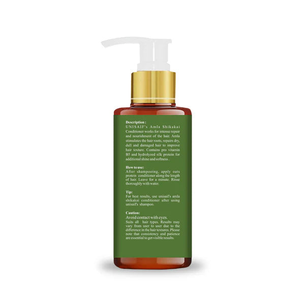 UNISAIF's Amla Shikakai Conditioner works for intense repair and nourishment of the hair. Amla stimulates the hair roots, repairs dry, dull and damaged hair to improve hair texture. Contains pro vitamin B5 and hydrolyzed silk protein for additional shine and softness .