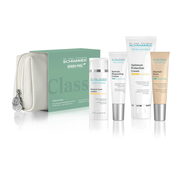 The Green Peel Home Care Regulating Set is designed to nurture and protect the skin following the GREEN PEEL® Herbal Peeling Treatment Classic. Carefully selected for their calming and regulating properties, the included products support skin recovery, reinforce the barrier, and promote a balanced complexion throughout the peeling phase.