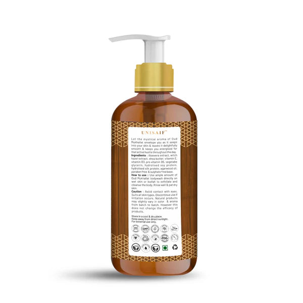 All our body wash ingredients meet the strict requirements of Indian Ayurvedic cosmetics. All our products are made from high quality ingredients. All our body wash are free of toxins and harmful chemicals. So, all you get in is the goodness of natural ingredients like Agarwood Oud, Apricot Oil, Sweet Almond Oil, Vitamin E and Virgin Coconut Oil & other plant based ingredients.