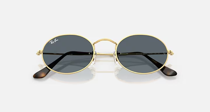 RAY-BAN Arista Gold & Blue Oval Sunglasses For Unisex M
