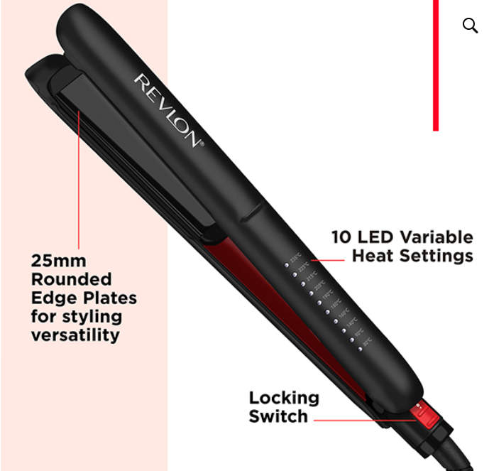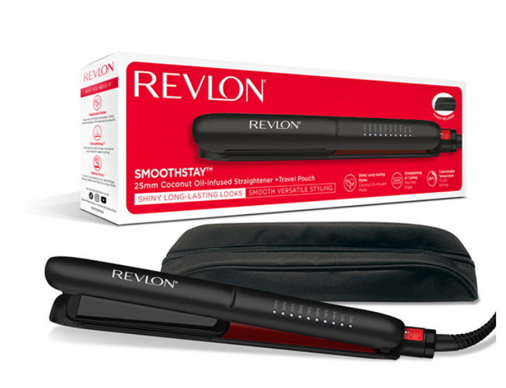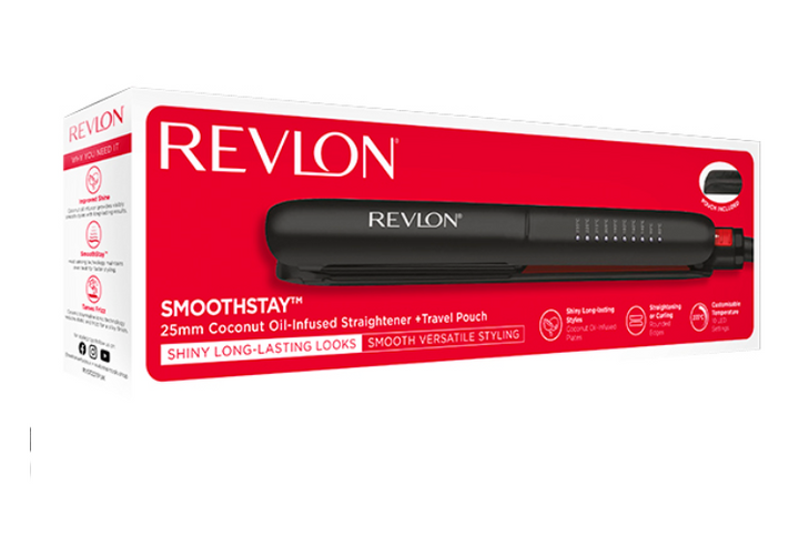 مكواة فرد الشعر سموث ستاي من ريفلون، ٢٥ مم، بزيت جوز الهند، مع حقيبة سفر
