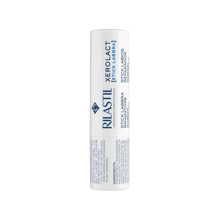 RILASTIL Xerolact Lips Rilastil Lip Stick nourishes and combats dry lips, leaving them soft and velvety. Ingredients: Is-Diglyceryl Polyacyladipate-2 • Diisostearyl Malate • Pentaerythrityl Tetraisostearate • Cera Alba (Beeswax) • Cera Microcristallina (Microcrystalline Wax) • Butyrospermum Parkii (Shea) Butter • Candelilla Wax [Euphorbia Cerifera (Candelilla) Wax] • Aroma (Flavor) • Ethyl Vanillin • Schizandra Chinensis Fruit Extract • Tocopheryl Acetate • Citric Acid •