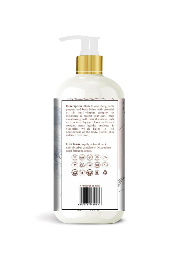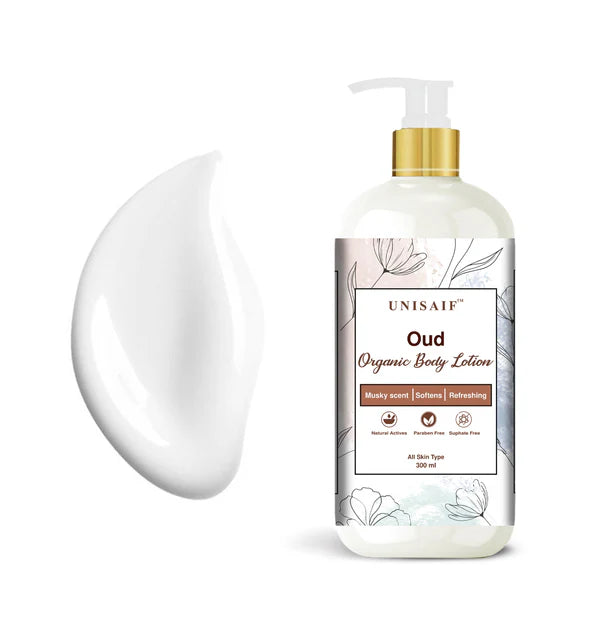 UNISAIF's Oud Lotion is one of the supremely nourishing range of body lotions that is non-greasy and smooth to touch. Contains aloe vera, vitamin E and licorice extract that allows holding of the moisture content, already present in it. Microfine particles of rusty arabian scent has a concentrated consistency which makes it more feasiable for both summers and winters.