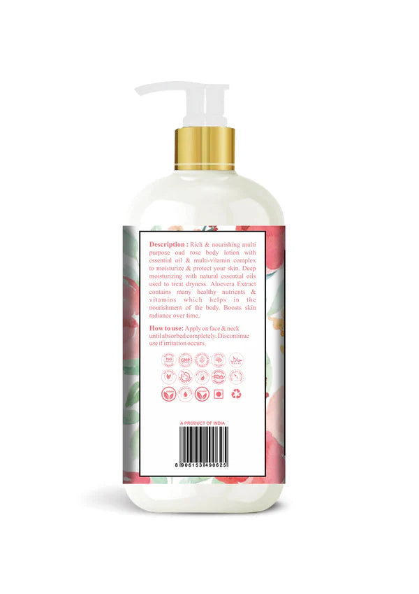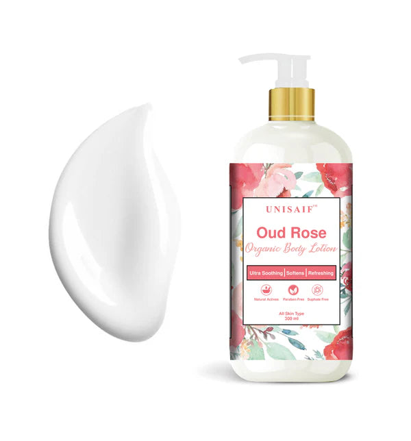 UNISAIF's Oud Rose Lotion creates a different kind of nourishing body care ritual that is deeply infused with benefits of rose in it. Contains rose extract, licorice extract, rose water, shea butter and vitamin E in it that harmonizes softness and smoothness to the skin. Generously formulated to tone, firm and scent your skin with extra protection.