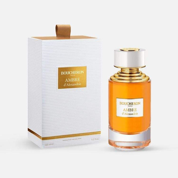 BOUCHERON Ambre d'Alexandrie EDP Unisex 125 ml captures an exquisite blend of warm amber and oriental notes, creating a rich and sophisticated fragrance that transcends gender. This 125 ml bottle offers a lasting scent experience, ideal for those seeking refined elegance and a timeless aura. Perfect for day or evening wear, it envelops you in a harmonious balance of sensuality and freshness, reflecting a deep heritage of luxury.