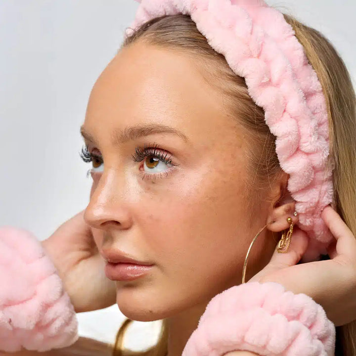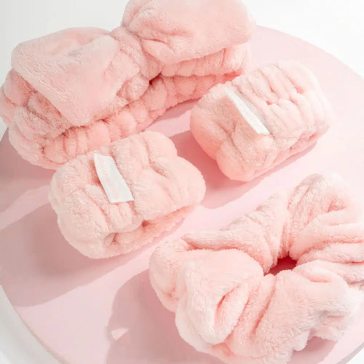 Paired with a microfibre scrunchie that offers a gentle hold without snagging or tugging on your hair thanks to its ultra-soft fabric. Additionally, two Wrist Wash Bands provide convenience during skincare routines, keeping your wrists dry and free from product residue.