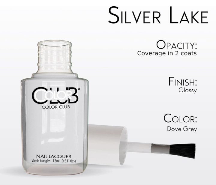 Color Club's Silver Lake is a light feather grey with a blue undertone creme nail polish.