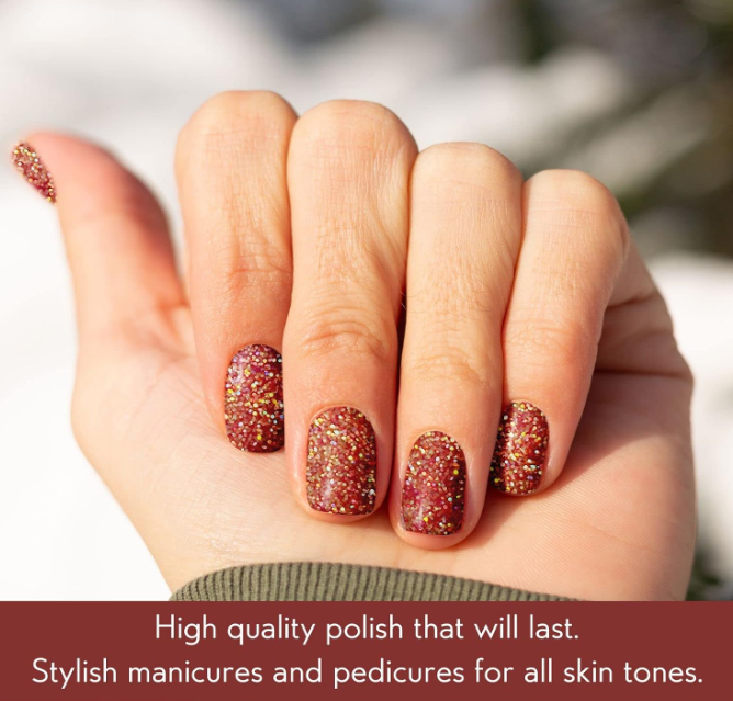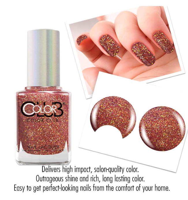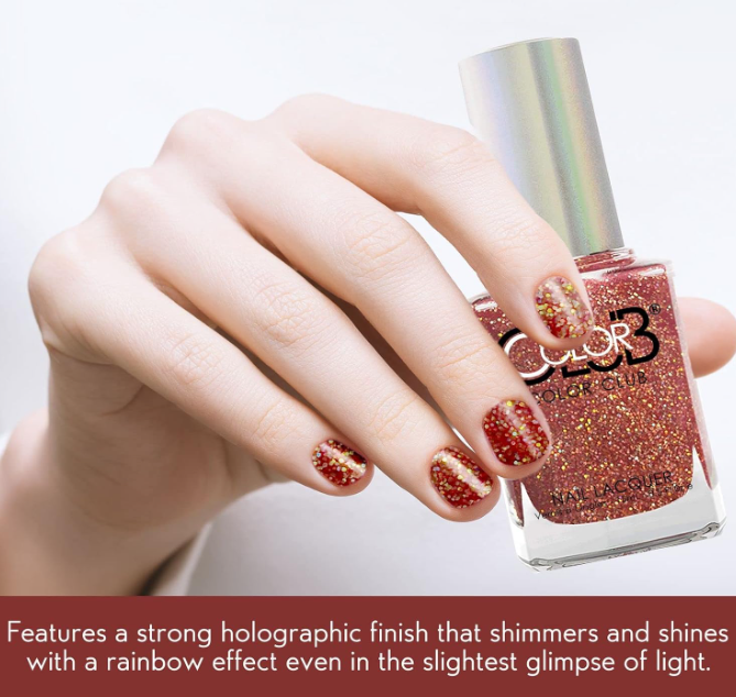 Color Club's collection of holographic nail polish, Halo Hues, features a strong linear holo finish that shimmers and shines with a rainbow effect.