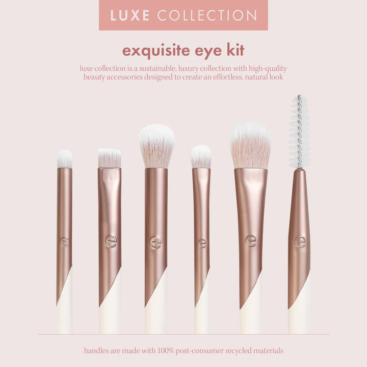 EcoTools Luxe Eye Brush Kit has everything you need to make that elegant, dramatic, or smokey eye. The brush set is eco-friendly, vegan, and 100% cruelty-free with ergonomic brush handles. The makeup brushes have luxurious soft bristles that are dense to use less product while feeling soft as a pillow on your skin. This makeup brush set pairs best with liquid, cream, and powder-based eye shadows, gel liner, and brow gel to create a professional look effortlessly. This brush set includes a smudge brush, controlled setting brush, angled crease brush, flat eyeliner brush, blurring brush, and a spoolie brush. Part of EcoTools Luxe's sustainable luxury collection of high-quality skincare and beauty accessories designed to create effortless, natural looks with our softest bristles yet. The EcoTools Brushes feature our signature smooth, renewable bamboo handles, synthetic Taklon bristles, and sleek ferrules made with recycled aluminum for a clean beauty experience. Achieve a streak-free look with buildable coverage that is not animal-tested and completely vegan! Whether you use them for the eyes, blush, foundation or to travel with, EcoTools makeup brushes flawlessly help apply products to your face regardless of skin tone and type. Made from recycled and sustainable materials to make you feel as good as you look with a classic flawless application to match.