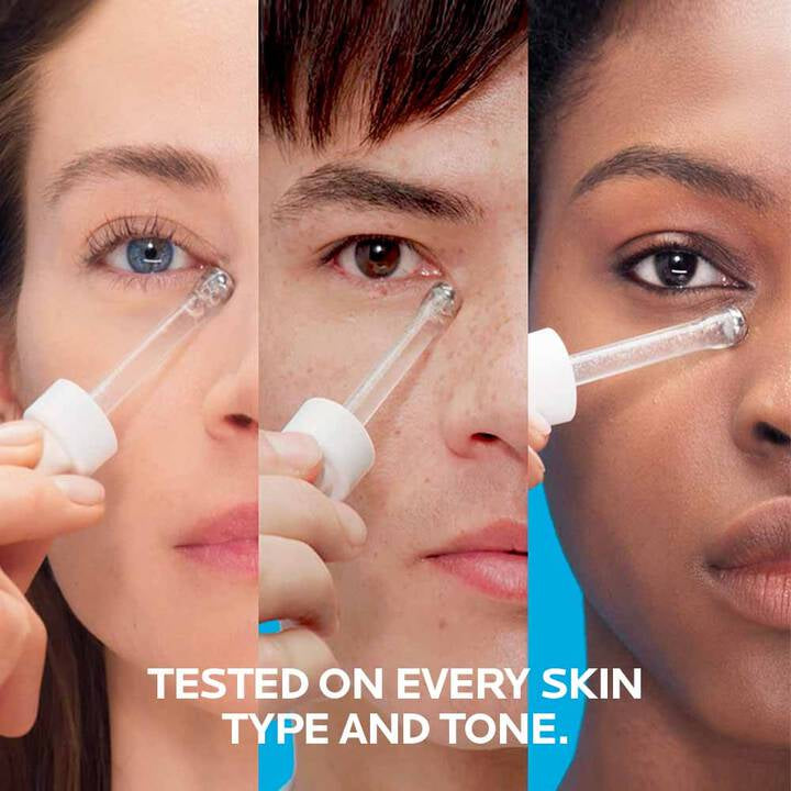 This intensely hydrating eye serum is clinically proven to replump wrinkles and correct the look of dark circles. Visible improvements at 2 weeks. Tested on every skin tone. Formulated with two types of hyaluronic acid to replump and vitamin B5 to repair. Plus NEW 10% Anti-Dark Circle Complex with caffeine, vitamin B3, vitamin Cg and HEPES. Featuring new medical-grade 360-degree steel ball applicator for reinforced depuffing efficacy.