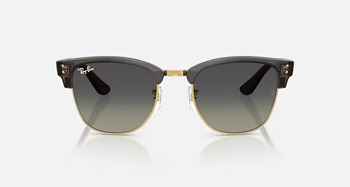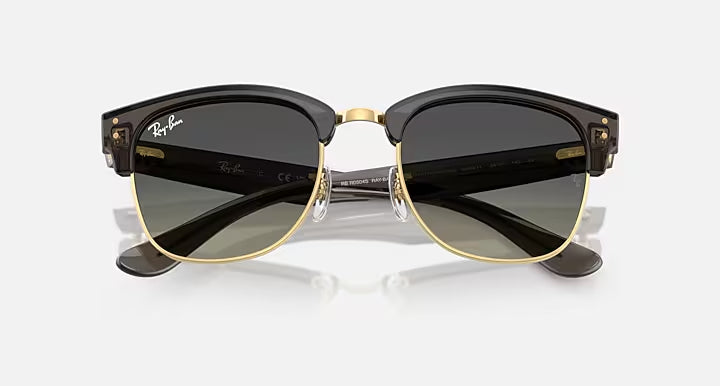 RAY-BAN CLUBMASTER REVERSE Transparent Dark Grey On Gold & Grey Gradient Square Sunglasses combine classic design with contemporary style. Featuring a transparent dark grey frame paired with gold accents, these unisex sunglasses offer a sophisticated look. The grey gradient lenses provide smooth light transition, enhancing visual comfort while protecting your eyes. Their square shape suits various face types, making them a versatile accessory for everyday wear. Crafted with attention to detail, these sunglasses balance fashion with function for an elevated eyewear experience.