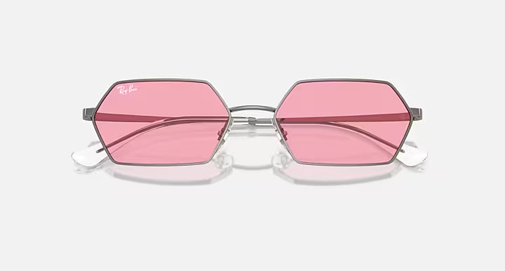 RAY-BAN YEVI BIO-BASED Gunmetal & Pink Irregular Sunglasses For Unisex L