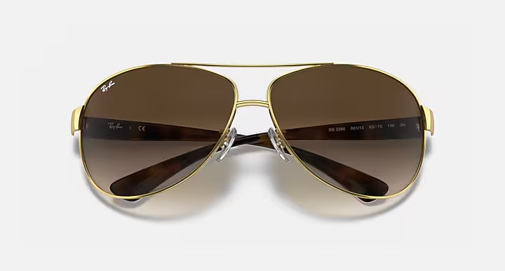 RAY-BAN RB3386 Arista Gold & Brown Gradient Pilot Sunglasses For Men L