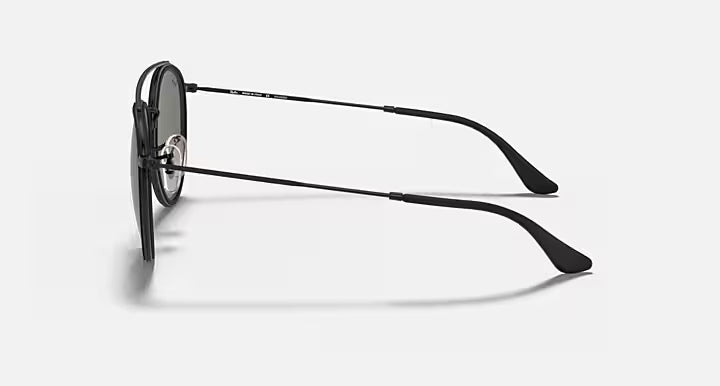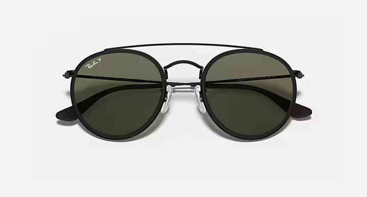RAY-BAN ROUND DOUBLE BRIDGE Black & G-15 Green Round Sunglasses For Unisex M