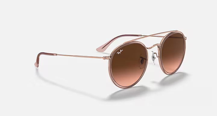 RAY-BAN ROUND DOUBLE BRIDGE Copper & Brown Gradient Round Sunglasses For Unisex M