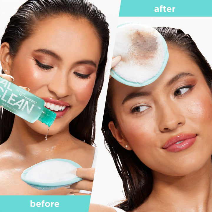 The Real Techniques Real Clean Makeup Remover Pads are dual-sided reusable makeup-removing pads that help you erase the day away. Our makeup removing pads come in a pack of two and are dual-sided for targeted face and eye removal. Use the white side to remove your face makeup and the blue side to gently take off eye makeup. Just saturate a clean pad with eye makeup remover and gently swipe it along your face and neck. Product absorbs much better with pads than with single-use cotton rounds- plus you get the eco-friendly benefit of them being reusable. Pair the Makeup Remover Pads with our Real Clean line including the Face Erase Balm and the In-The-Clear Eye Makeup Remover. Like all our products, the Real Techniques reusable makeup removing pads are cruelty-free and vegan.