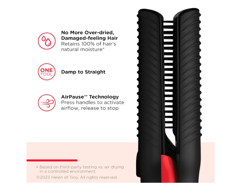 • DRY AND STRAIGHTEN IN ONE STEP: Unique vent design evenly distributes concentrated airflow while maintaining 100% of hair’s natural moisture (based on third-party testing vs. air drying in a controlled environment).